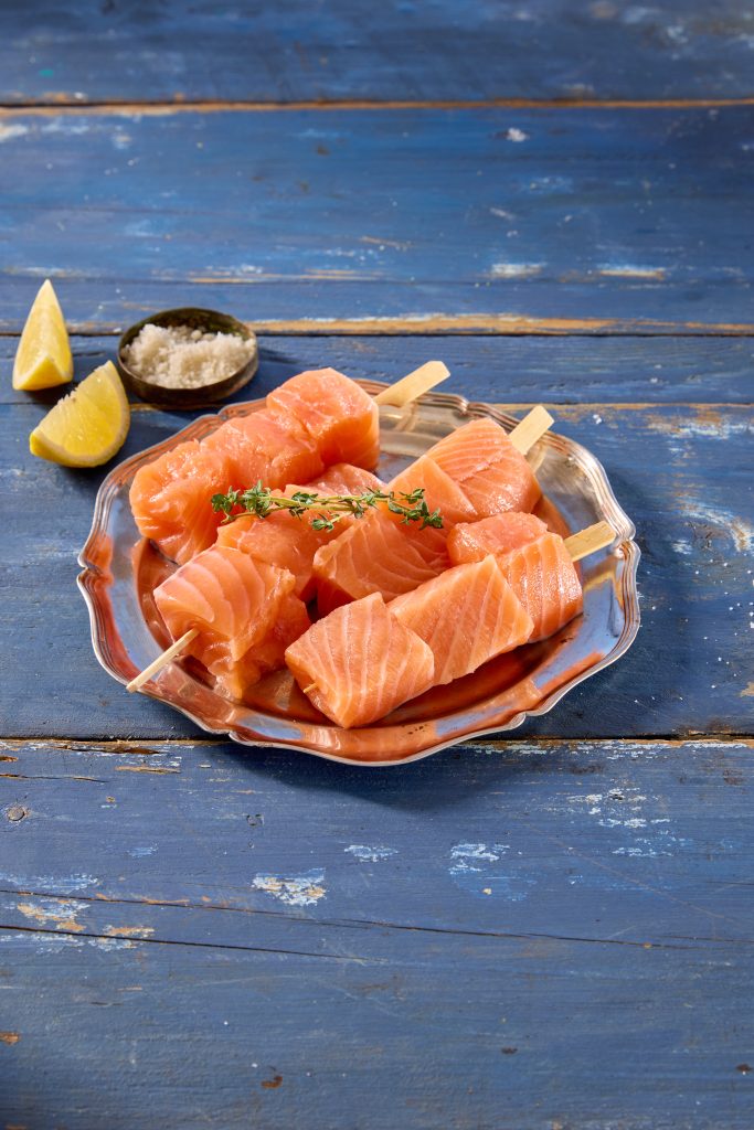 שיפודי סלמון מנתחים מובחרים ללא עור ושומן. כל שיפוד באזור ה150 גרם. מתאים מאוד לתנור או צלייה במחבת.
